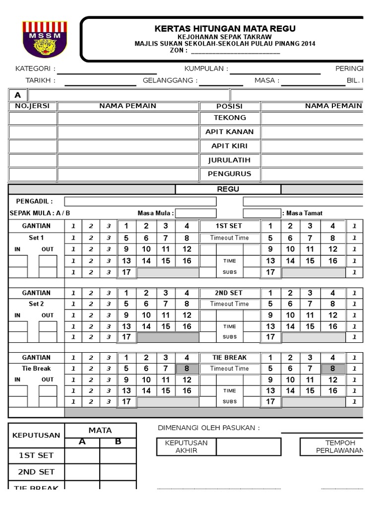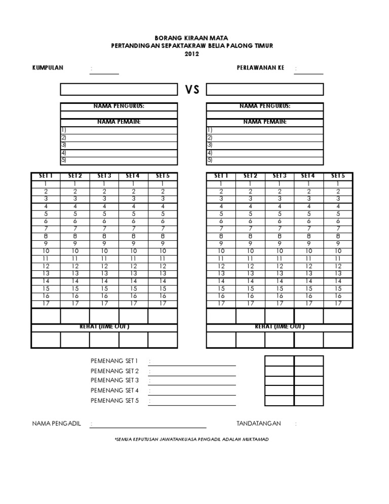 Borang Kiraan Mata Pengadil Sepaktakraw Pdf